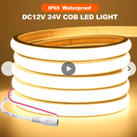 Tira LED COB (Chip On Board) de alta densidad, con funcionamiento a 12V y disponible en rollos de hasta 20 metros. Esta tira LED ofrece una iluminación cálida y uniforme, ideal para crear ambientes acogedores y sofisticados en una variedad de entornos. Su clasificación impermeable IP65 garantiza una protección eficaz contra la humedad y el polvo, lo que la hace adecuada tanto para interiores como para exteriores, desde la iluminación de terrazas y jardines hasta proyectos en espacios húmedos como baños y cocinas.